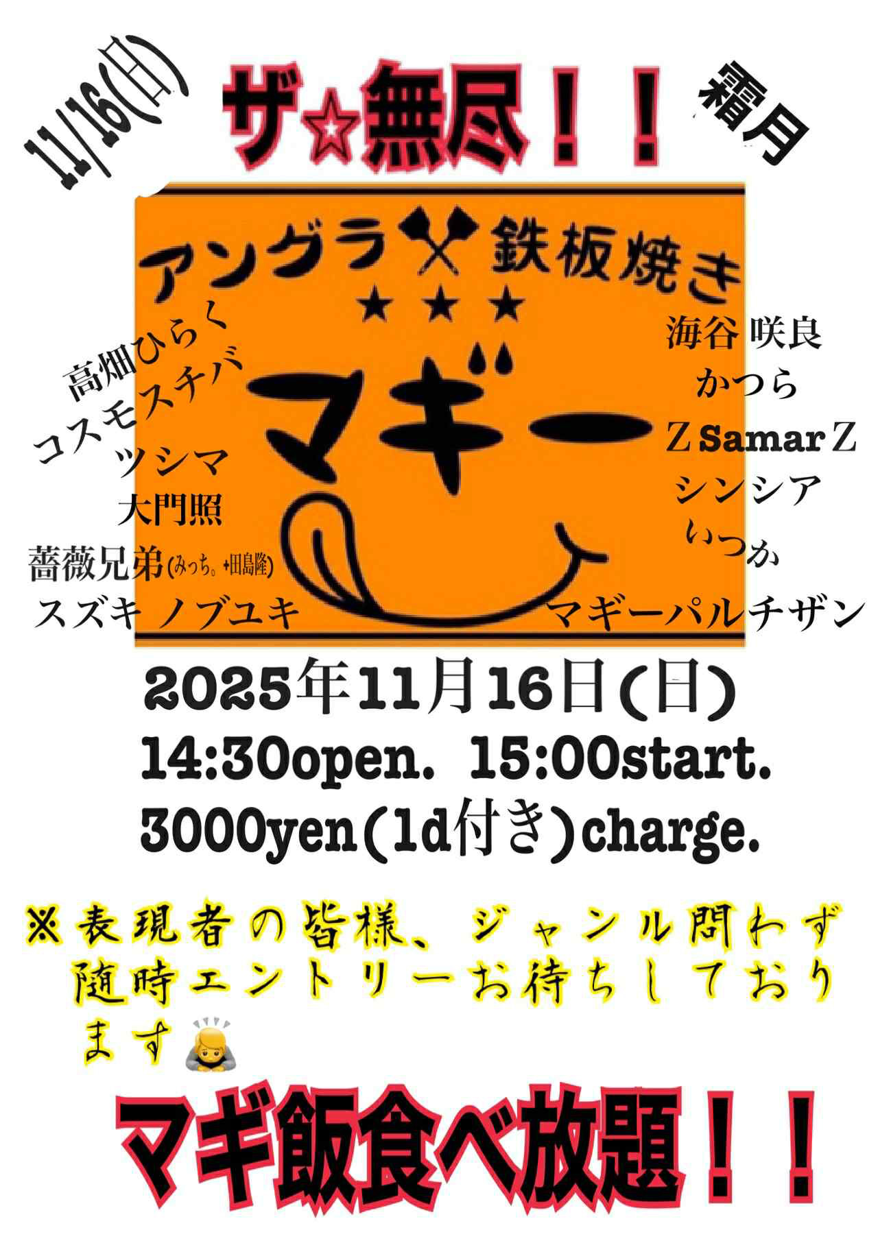 日時:11月16日(日)14:30opn 15:00start