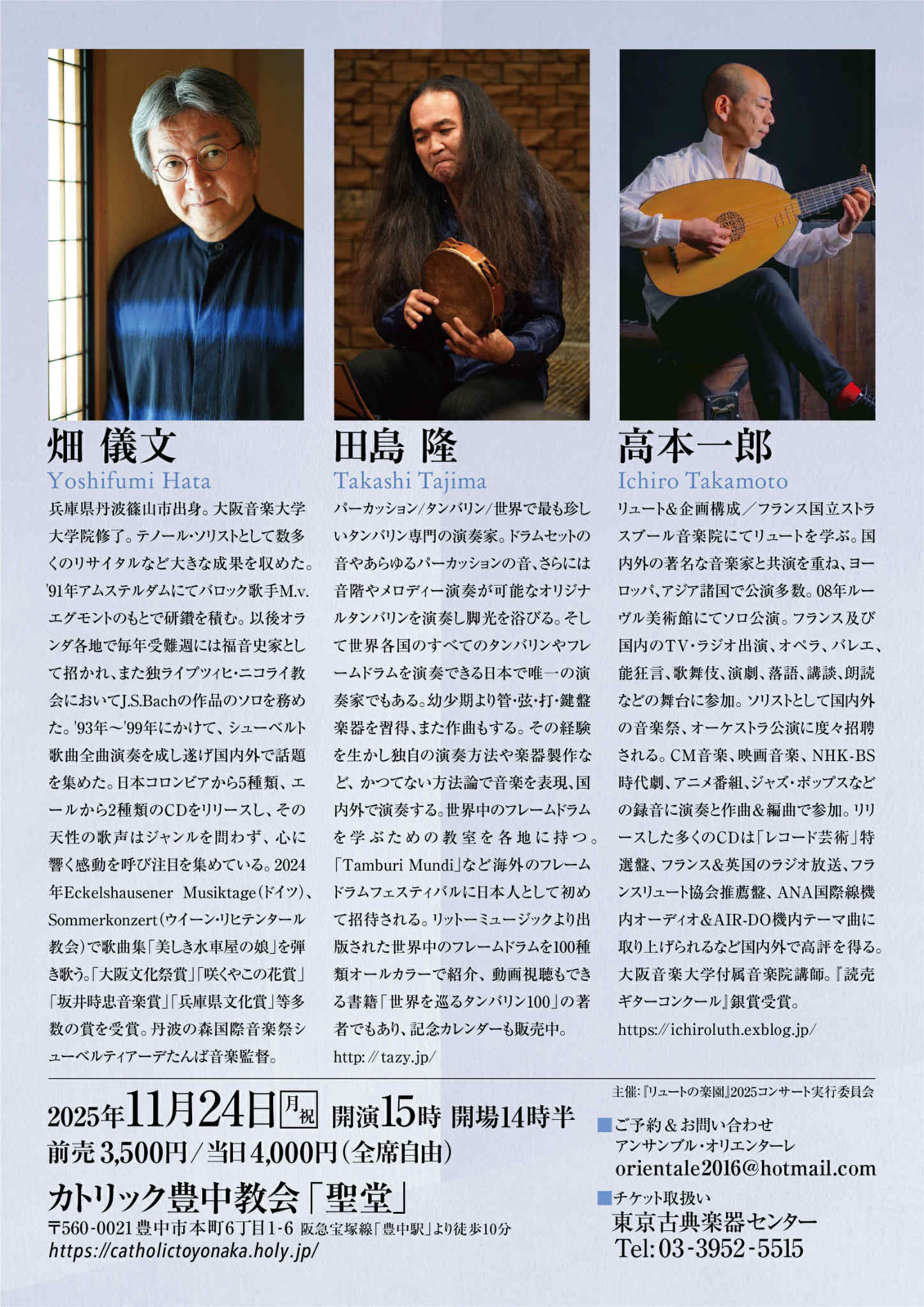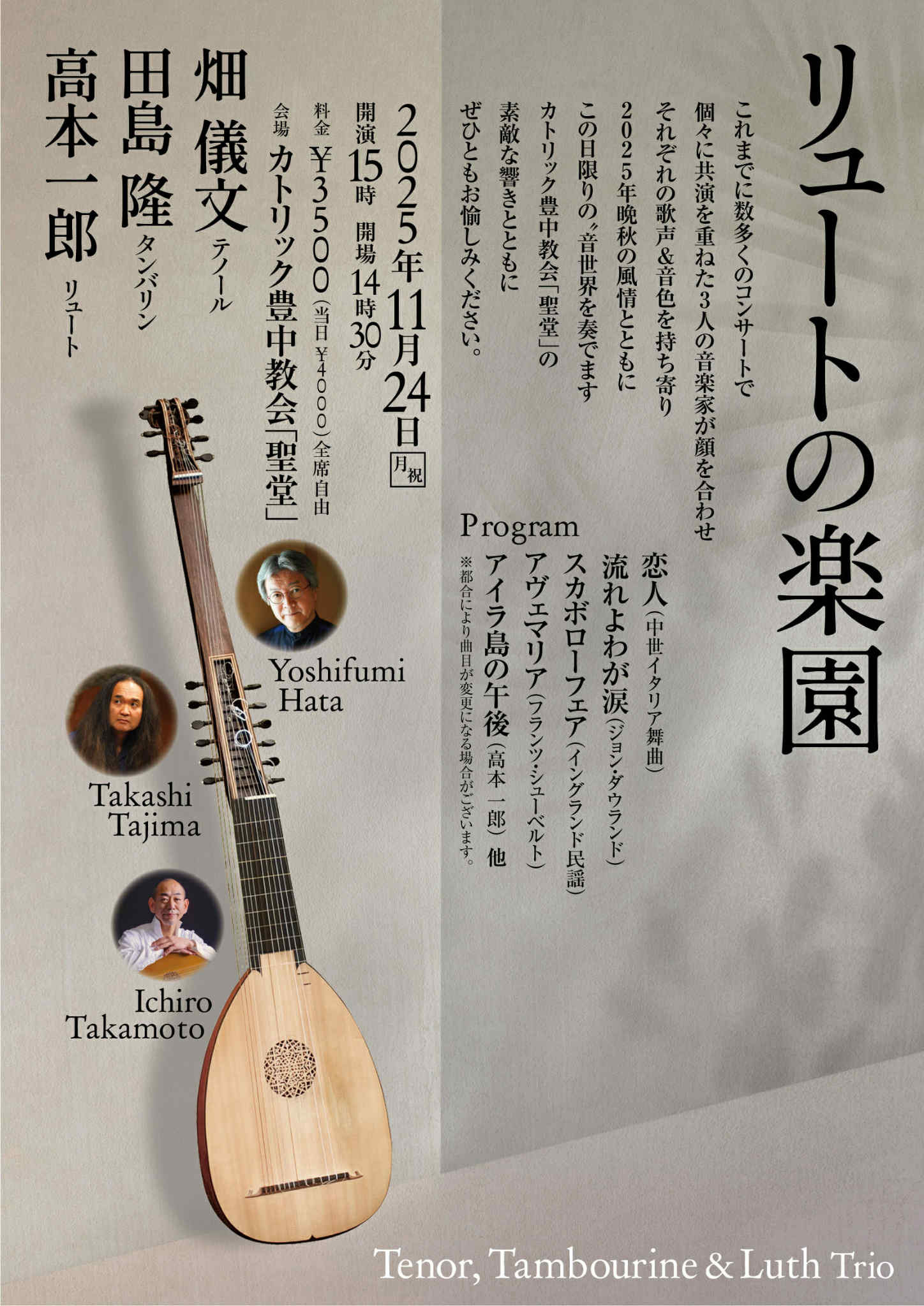 出演:高本一郎(リュート)畑儀文(テノール)田島隆(タンバリン)